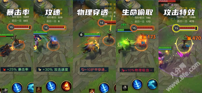 暴击装备有无尽之刃、夺萃之镰、岚切、纳沃利迅刃等,主要以普通攻击为主要手段的英雄必备,比如小炮、金克丝、蛮王、亚索等,依据英雄不同特性在其中进行选择。