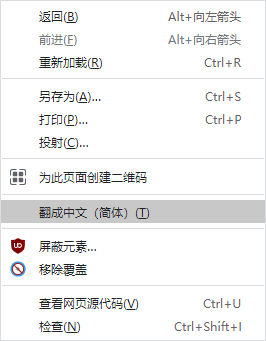 2、鼠标右键菜单中会显示翻译功能,如果当前页面可正常翻译,菜单栏才会显示翻译图标。